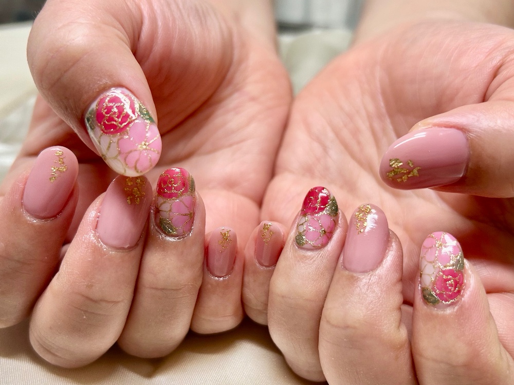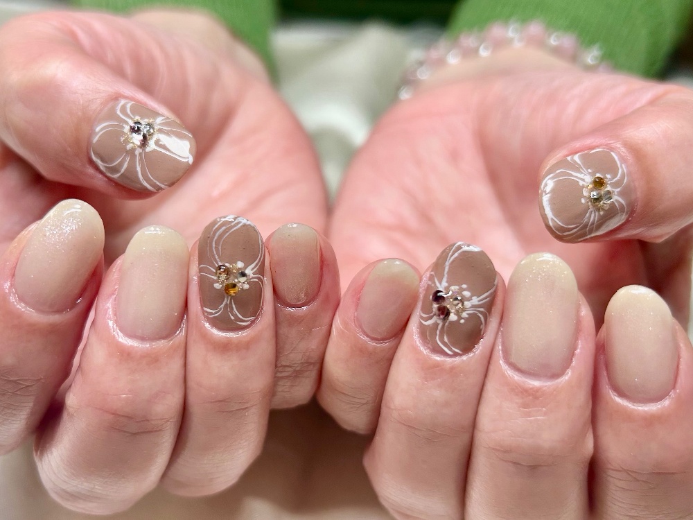 | ジェルワンカラー ジェルグラデーション +お好きなアート4本 ¥9800 | 【ハンドもフットも同価格】 店内のサンプルアートからも、お持込み画像アートもお好きなアートで仕上げます。 |